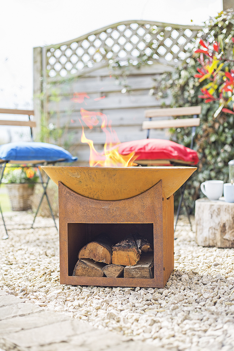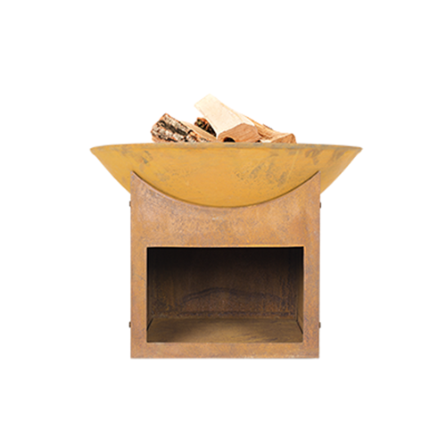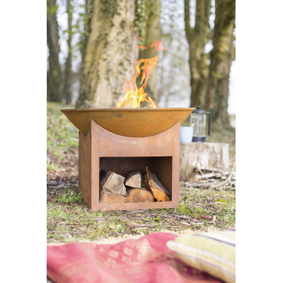 Дизайнерская чаша для костра Fasa, изготовленная из стали и чугуна прекрасно впишется в любой ландшафт, а небольшая дровница поможет держать дрова всегда рядом с кострищем. Отделка «под естественную ржавчину» добавляет привлекательности этой модели.