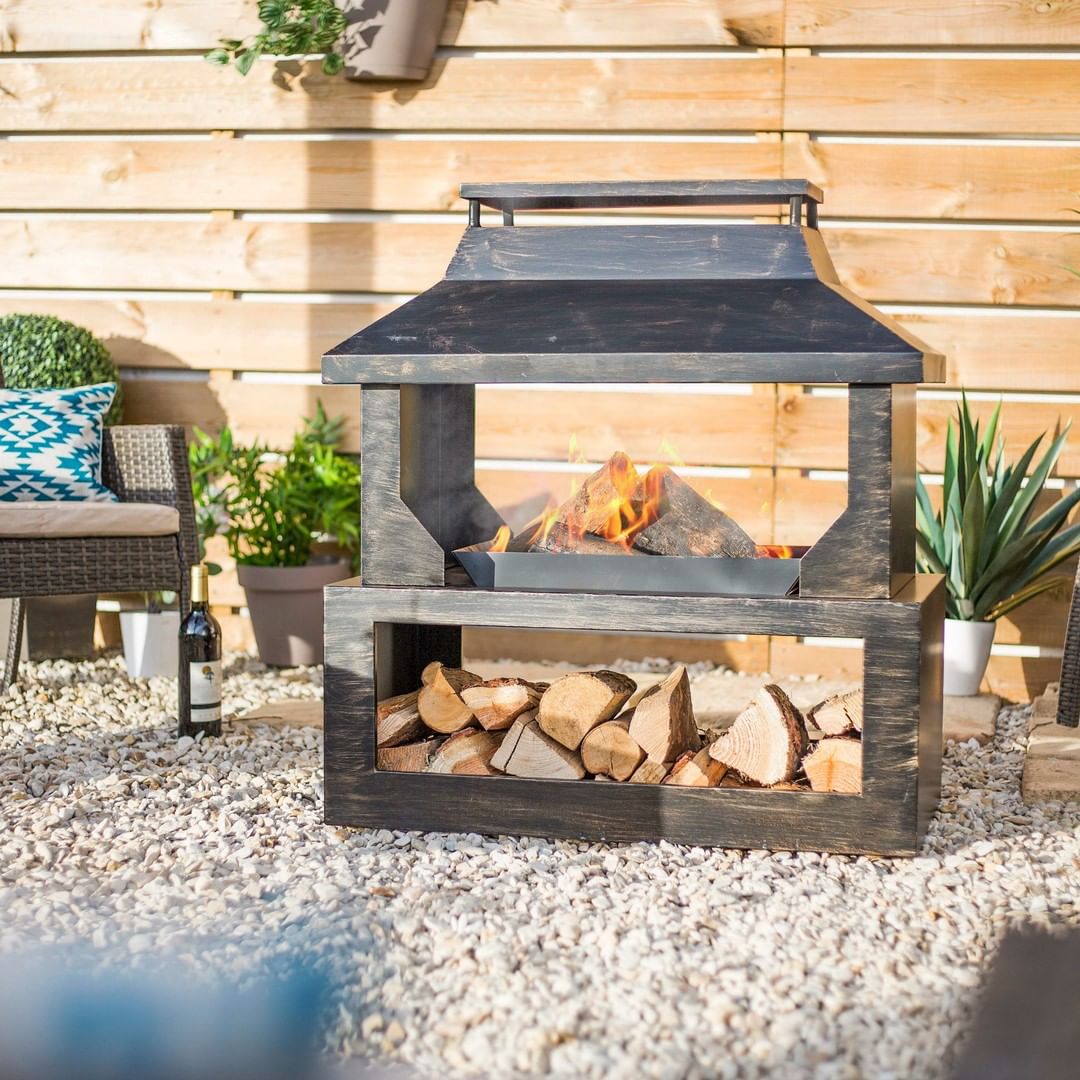 Stonehurst — изготовленный из высококачественной стали, поразительный камин с бронзовой отделкой. Открытые стороны стимулируют потоки воздуха, чтобы раздуть огонь и создать красивый костёр. Есть вместительный отсек для брёвен внизу и, поскольку камин просматривается с обеих сторон, это идеальное дополнение к посиделкам на открытом воздухе в прохладные вечера.