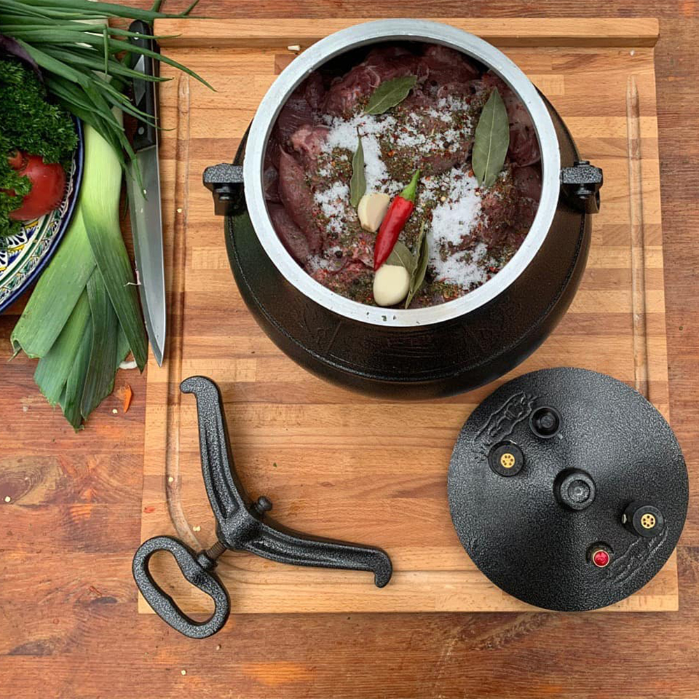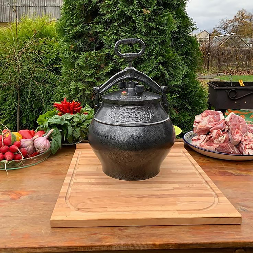Главный критерий выбора афганского казана — его объём. Не стоит забывать, что загрузка производится на 2/3 от полного объёма казана. Обычно объём указывается на крышке на персидском языке. Отличным дополнением к конструкции будет аварийный клапан, который избавит от массы проблем, например, от излишка пара.