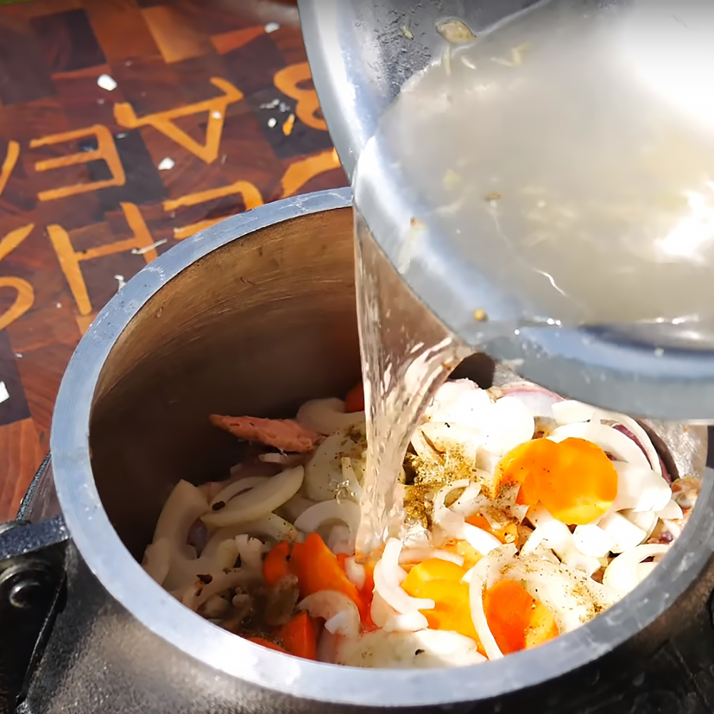 Перед первым применением в казан наливают воды 1/3 объёма, доводят до кипения, оставляют на 5-8 минут. Затем жидкость сливают, ёмкость промывают чистой проточной водой. Таким образом смывается производственная пыль, смазка. Чистый котелок промасливают. Покрошенную головку лука обжаривают в 100 мл подсолнечного масла. Делать это нужно с закрытой крышкой, периодически перемешивая катанием либо встряхиванием котла. Масло должно распределиться по всем стенкам.