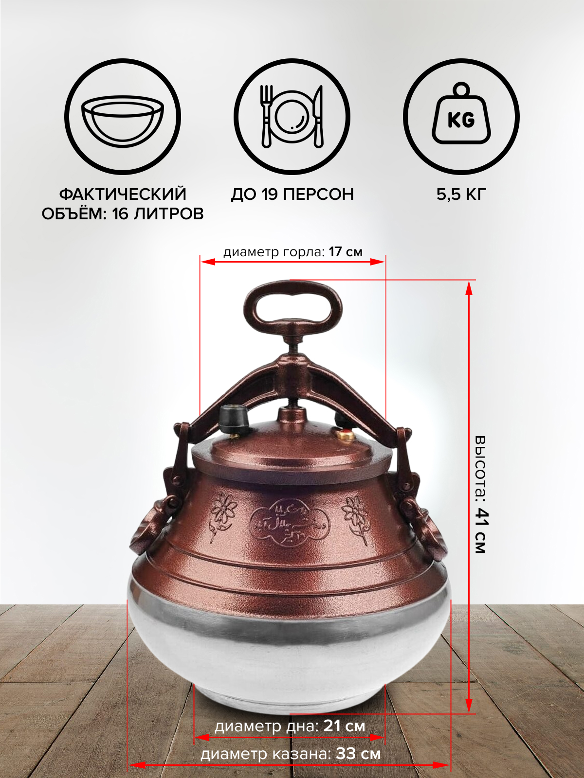 Главный критерий выбора афганского казана — его объём. Не стоит забывать, что загрузка производится на 2/3 от полного объёма казана. Обычно объём указывается на крышке на персидском языке. Отличным дополнением к конструкции будет аварийный клапан, который избавит от массы проблем, например, от излишка пара.