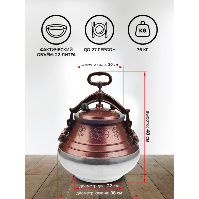 Главный критерий выбора афганского казана — его объём. Не стоит забывать, что загрузка производится на 2/3 от полного объёма казана. Обычно объём указывается на крышке на персидском языке. Отличным дополнением к конструкции будет аварийный клапан, который избавит от массы проблем, например, от излишка пара.