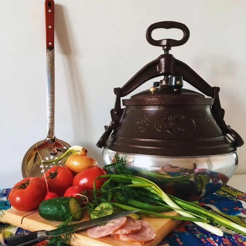 После каждого приготовления казан моют обычной проточной водой. Единственное правило — использовать мягкую ткань или губку. Жёсткие материалы поцарапают покрытие и ускорят коррозию. Клапаны также промывают после каждого применения. Потемневший металл возвращают в исходный вид с помощью кипятка и лимона. Сок 1-2 плодов кипятят в литре воды прямо в казане, смывают отошедший жир. Снаружи также можно протереть лимонным раствором, а затем чистой тканью.
