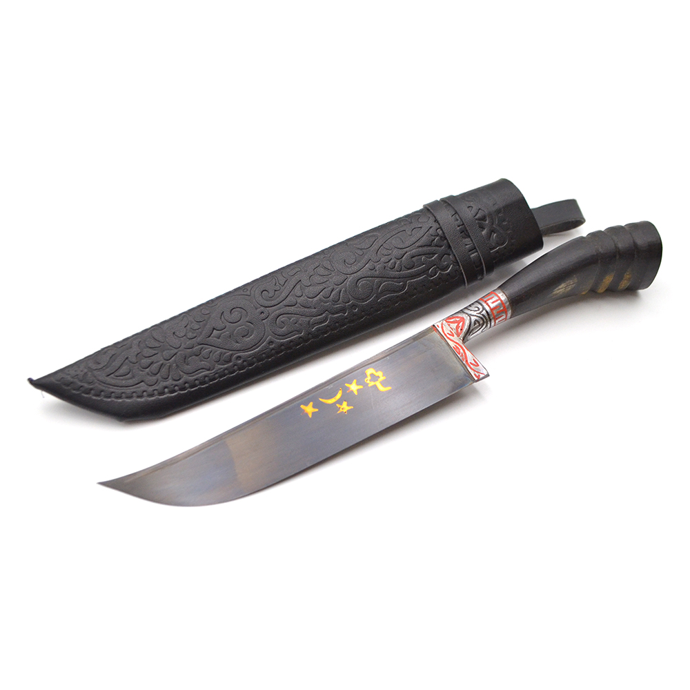 Узбекский нож «Пчак» — национальный узбекский нож, который имеет прямой широкий клинок из прочной подшипниковой стали с односторонней заточкой, в связи с этим точить нож Вы будете крайне редко. Рукоятка из рога быка имеет привлекательный внешний вид, высокую стойкость к внешним воздействиям и высокую износостойкость.