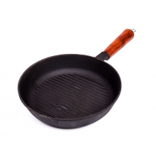Чугунная сковорода-гриль БЛМЗ 240*50 с деревянной ручкой