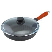 Чугунная сковорода-гриль БЛМЗ 240*50 с деревянной ручкой и стеклянной крышкой