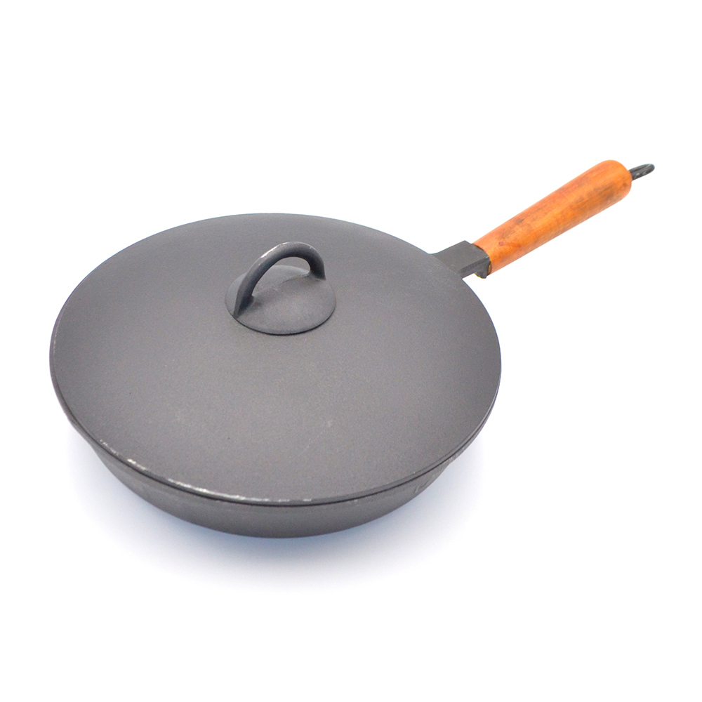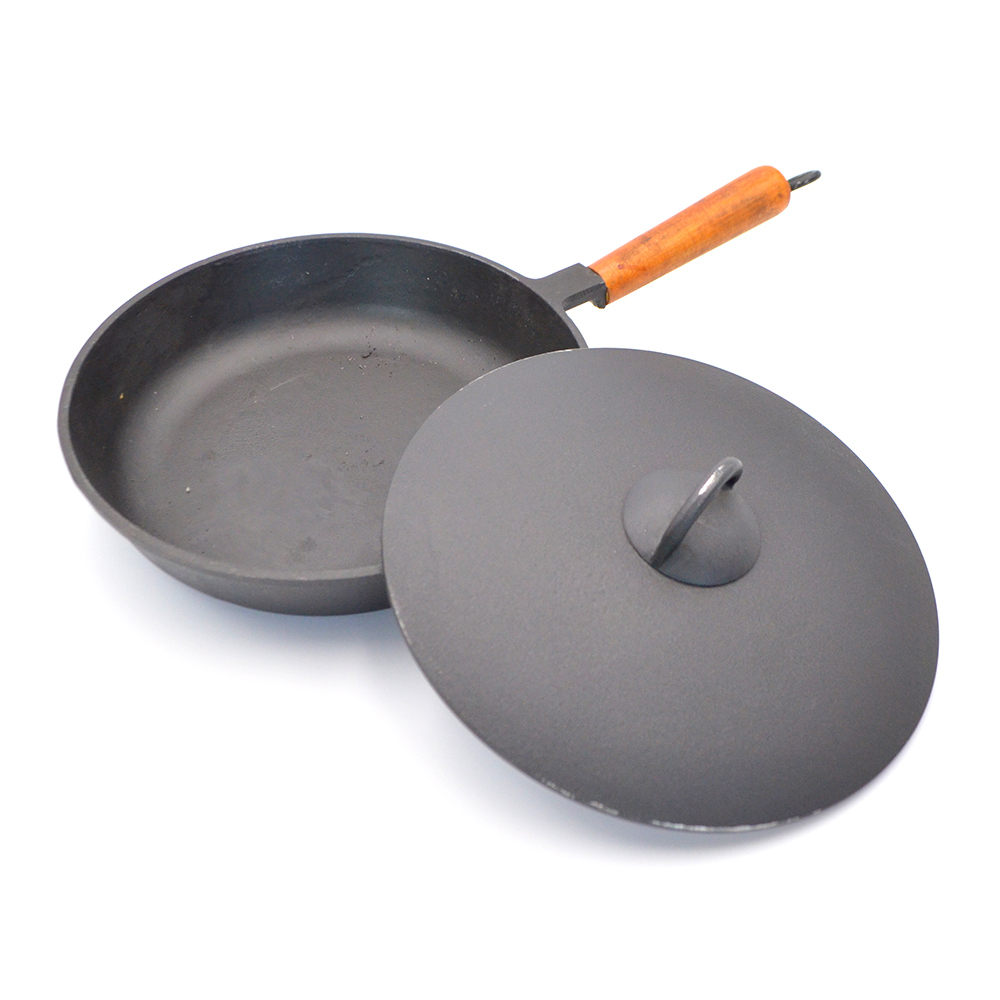 Чугунная сковорода БЛМЗ 240*50 с деревянной ручкой и крышкой