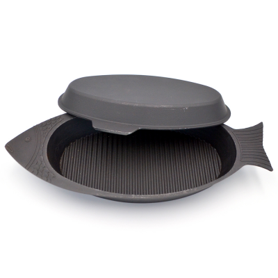 Чугунная сковорода-рыбница БЛМЗ с крышкой