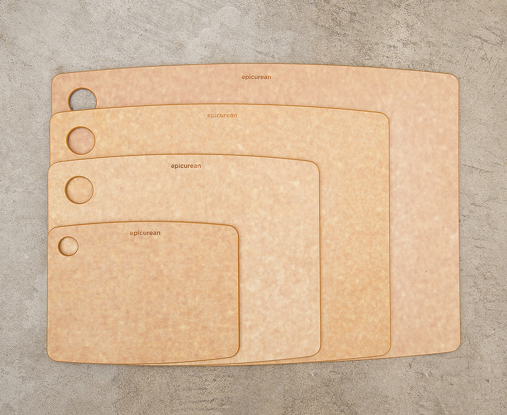 Разделочные доски Epicurean Kitchen Series – это универсальные доски для повседневного использования дома или на улице. Эти доски не займут много места даже на небольшой кухне. Идеально подходят для разделки и нарезки любых продуктов. Изготовлены из профиля толщиной 0,6 см. В каждой доске есть удобное отверстие для подвешивания на крючок.
