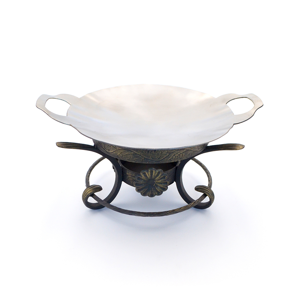 Садж сковорода 30 см из нержавеющей стали на кованой подставке