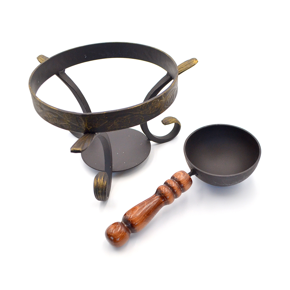 Кованая подставка под садж сковороду со съёмным зольником в классическом исполнении. Подставка настолько надёжная, что выдержит не только саджи, но и чугунные сковороды.