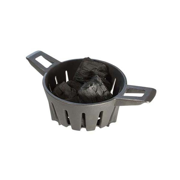 Благодаря конструкции чугунной корзины Вы сможете быстро и просто разжечь уголь, а после одним движением поместить горящий уголь в гриль с помощью совместимой с корзиной ручки-ухвата.