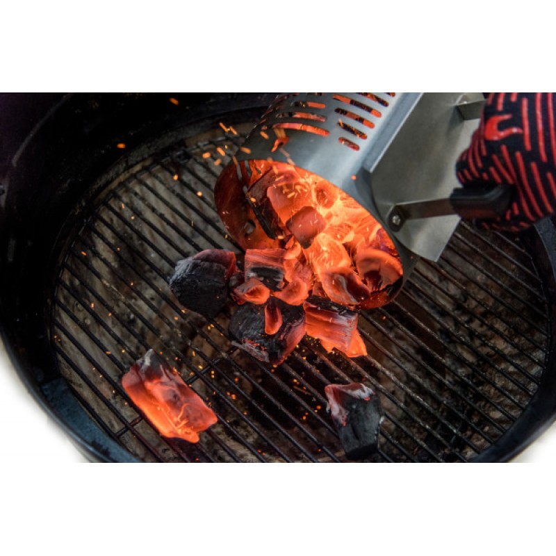 Уголь в стартере Half-Time разжигается вдвое быстрее, чем в обычном! Инженеры Char-Broil увеличили диаметр стартера и площадь отверстий со всех сторон. В результате это обеспечивает максимальный приток воздуха и быстрый розжиг угля.