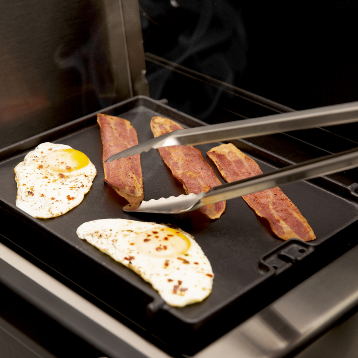 Двухсторонний чугунный противень для боковой горелки заменит сковородку, благодаря которому из Вашего дома исчезнут неприятные и стойкие запахи, а Вы приготовите всё, что любите. Вы можете приготовить картофельные оладьи, блины, хрустящий бекон и яичницу. Противень покрыт фарфоровой эмалью для предотвращения прилипания и коррозии.