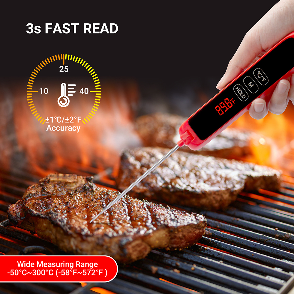 Inkbird 2-in-1 – термометр со складным и внешним проводным щупами. Складная конструкция и металлический крючок делает хранение удобным, а магнитная спинка позволяет держаться на поверхности бытовых приборов, таких как духовки, холодильники, грили и т.п.