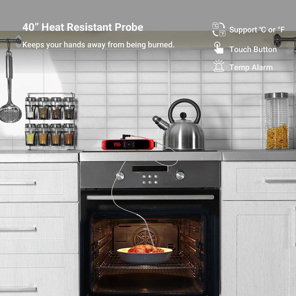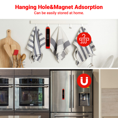 Термометр имеет магнитную нижнюю панель для более удобного использования, разместите его на любой металлической поверхности для повышения эффективности при приготовлении барбекю или гриля. Для удобного хранения термометр оснащён металлическим крючком.