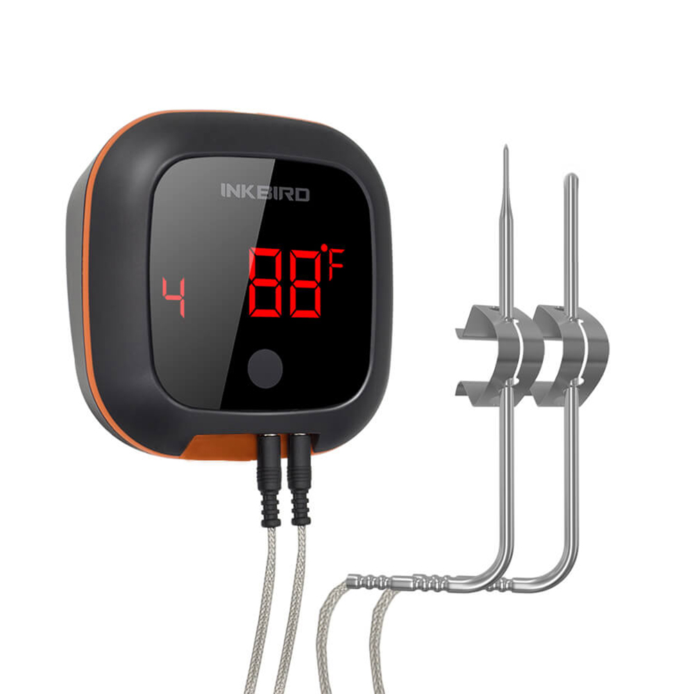 Inkbird IBT-4XS – это Bluetooth-термометр для мяса с беспроводным управлением, сигнализацией температуры, магнитной задней панелью, широким диапазоном температур, высокой точностью измерения температуры и перезаряжаемой батареей и т.д. Он широко используется для приготовления в духовке, барбекю и гриле, поэтому заслужил высокую оценку среди профессионалов и любителей.