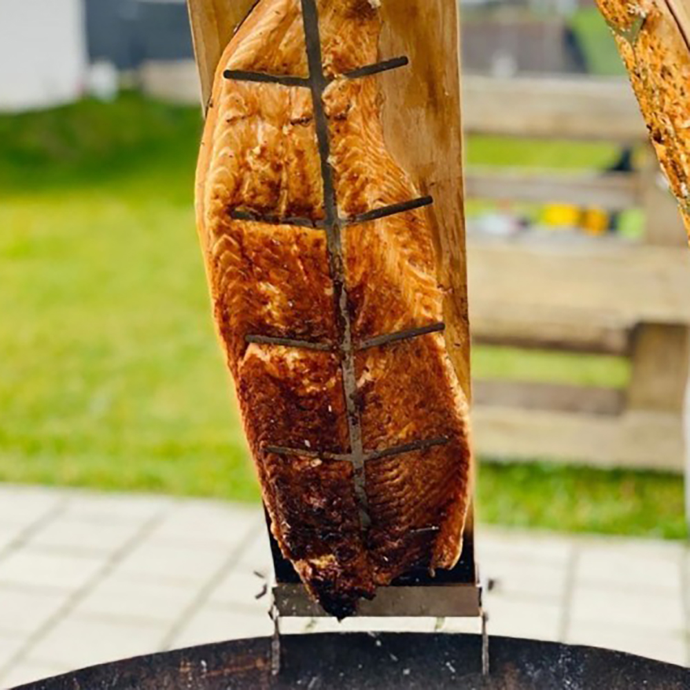 Доска идеально подойдёт для приготовления традиционного финского рыбного блюда — копчёного лосося на доске. Рыба готовится очень просто, а по вкусу получается значительно нежнее обычной копчёной рыбы. Комплект включает деревянную доску из бука и фурнитуру из нержавеющей стали.