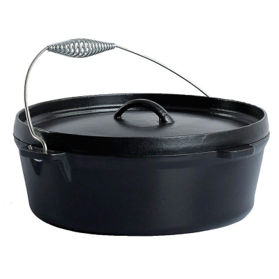 Прочная чугунная голландская духовка с толстой крышкой. Идеально подойдет для приготовления супов, а также тушения и томления продуктов. Объём духовки 4,5 литра.