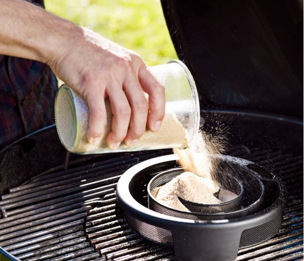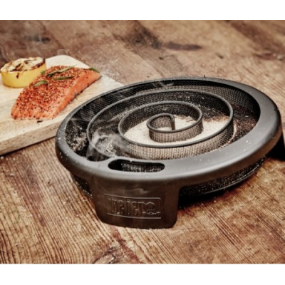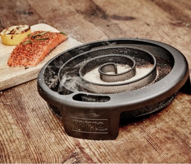 Генератор дыма Weber — простое и гениальное изобретение, чтобы превратить любой гриль в инструмент холодного копчения. Всё что Вам нужно — засыпать опилки (в комплект не входят) в чашу генератора дыма и поджечь с внешней стороны. Опилки будут постепенно тлеть в течение 8-10 часов, придавая блюду аромат копчения, без необходимости запекания.