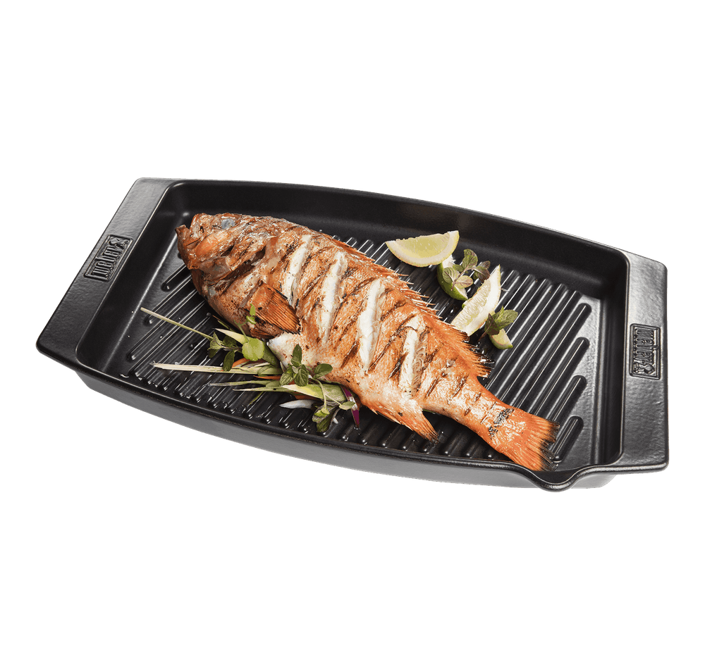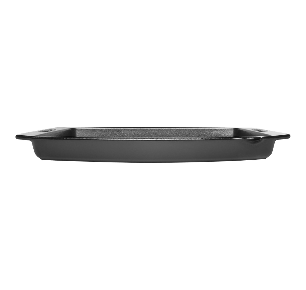 Керамический противень отлично подходит для приготовления на гриле и подачи блюд из рыбы, мяса и овощей. Также он удобен для жарки мелких продуктов, которые могут упасть вниз через решетку. Ребристое дно противня идеально подходит для создания рисунка, а специальный выступ на бортике позволяет удобно сливать лишний жир, соки или соус.