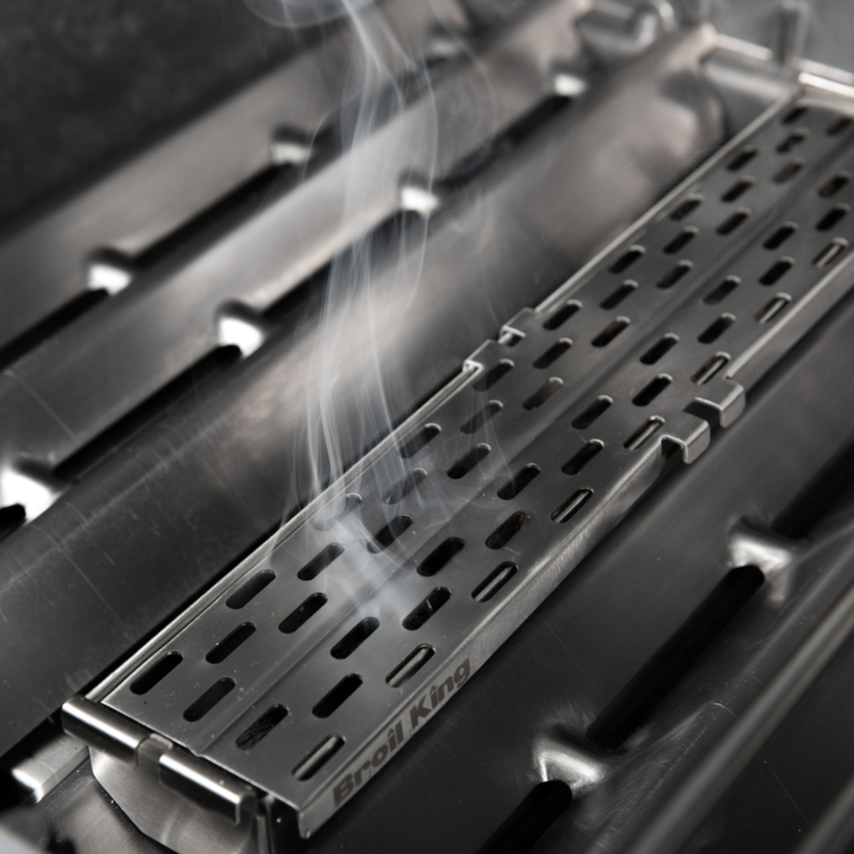 Ящик для копчения, предназначенный для пеллет придаст блюдам совершенно новый вкус и аромат. Простота изделия и потрясающие эффекты — главные достоинства этого аксессуара. Ящик сконструирован таким образом, что её можно ставить прямо на аромапластины или на решётку. Это очень простой способ начать своё приключение газового гриля в режиме копчения.