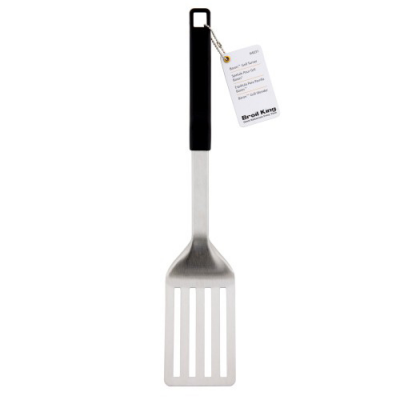 Лопатка Baron для грилей Broil King изготовлена из высококачественной нержавеющей стали. Лопатка имеет крючок и прочную каучуковую рукоятку с логотипом Broil King.