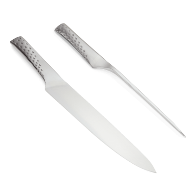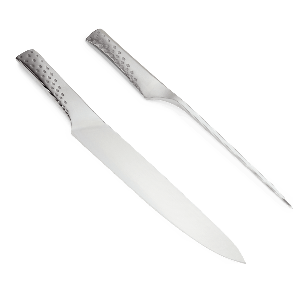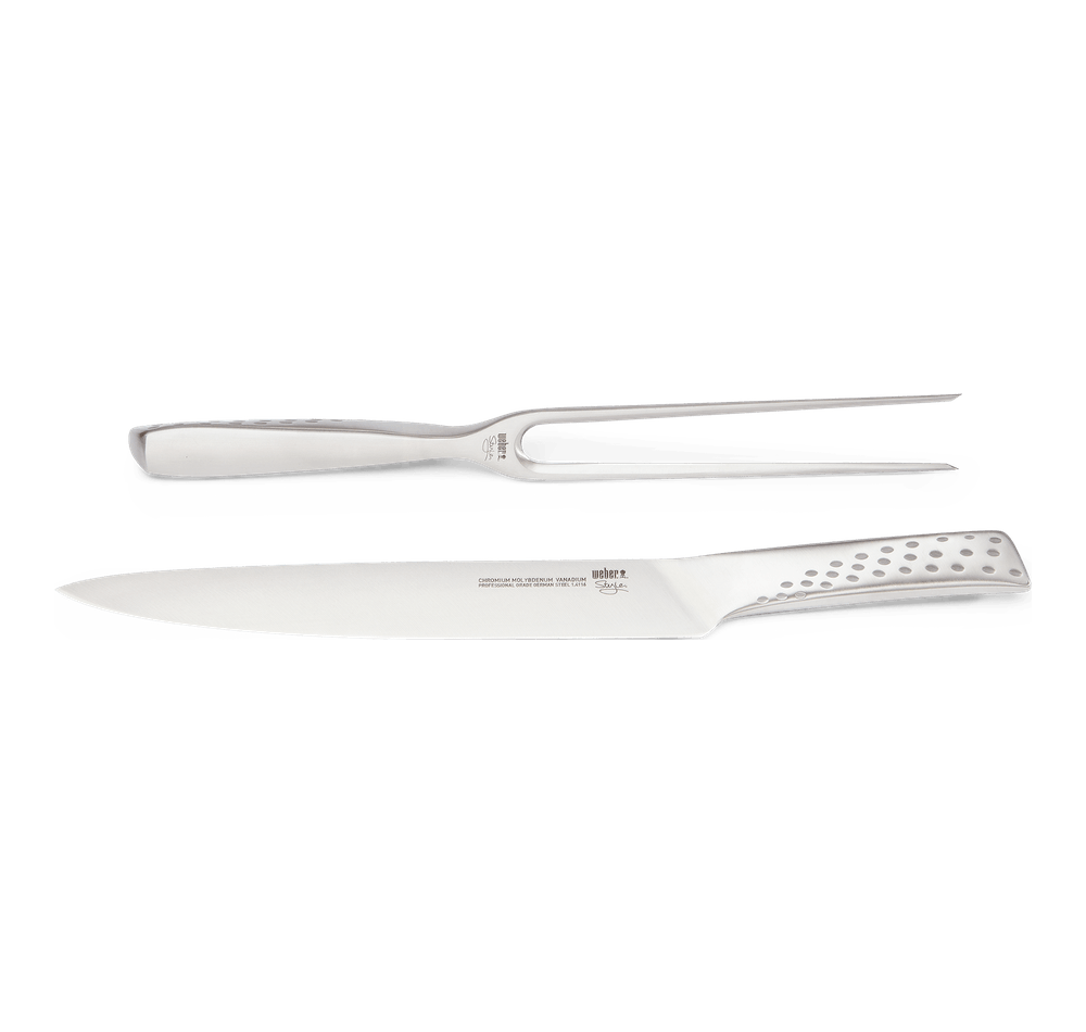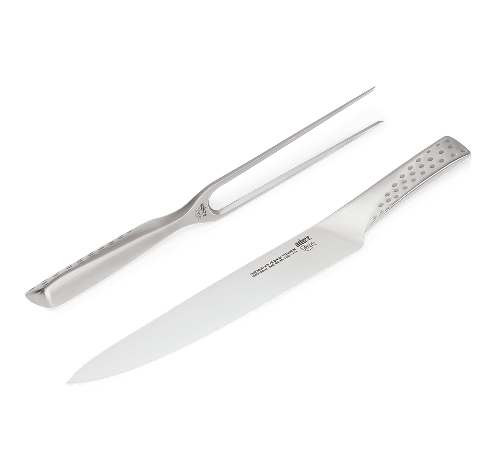 Нож для нарезки имеет длинное узкое лезвие и заострённый кончик, чтобы аккуратно прорезать мясо и отводить его от кости. Вместе с вилкой, предназначенной для удерживания мяса, набор для нарезки станет отличным дополнением к Вашим аксессуарам для гриля.