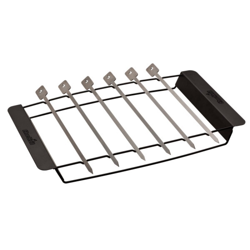 Набор мини шампуров Char-Broil поставляется с удобной подставкой. На подставке помещаются все 6 шампуров, для каждого из них есть паз для удобного позиционирования. Подставка ставится на жарочную решетку гриля, а во время хранения не занимает много места. Идеально подходит для приготовления шашлыка, овощей и морепродуктов.