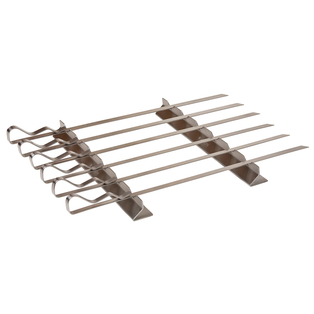 Набор для шашлыка Monolith состоит из шампуров и стоек. Набор идеально подходит для приготовления шашлыков и овощей. Острые концы позволяют легко насаживать на шампур, в то время как ширина предотвращает соскальзывание или вращение пищи. Шампуры могут быть размещены в разных положениях на стойке, что обеспечивает равномерное приготовление на гриле со всех сторон.