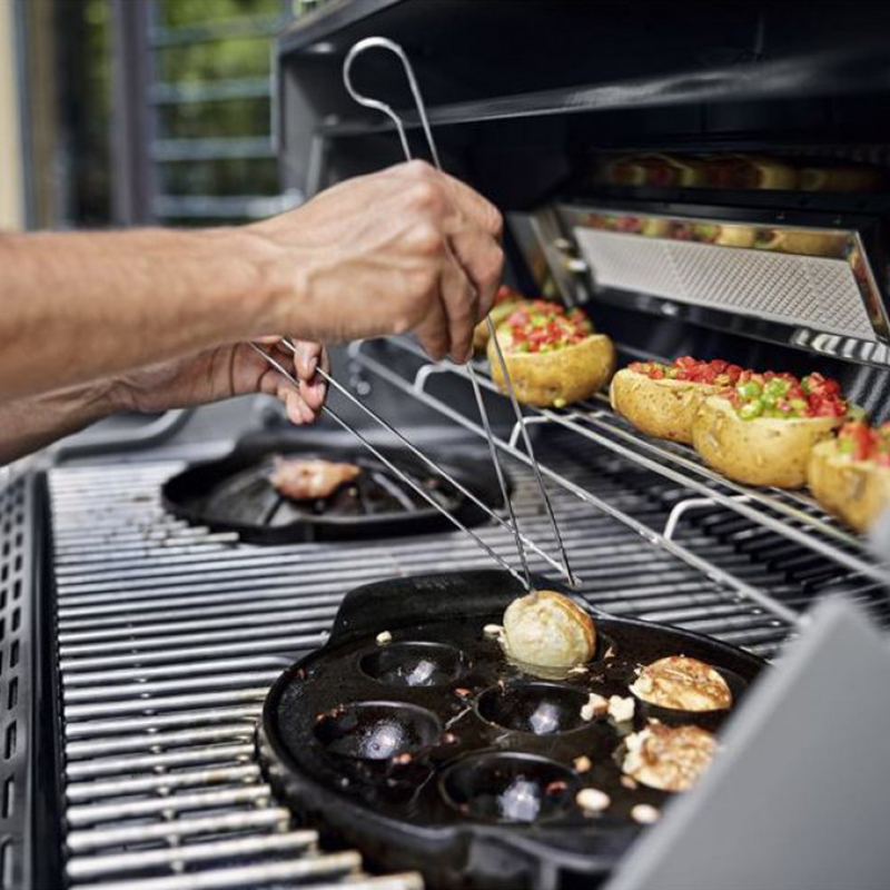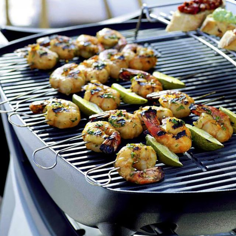Приготовленная на гриле пища надёжно удерживается сдвоенными шпажками и не скользит при вращении. Шпажки изготовлены из нержавеющей стали и их можно мыть в посудомоечной машине.