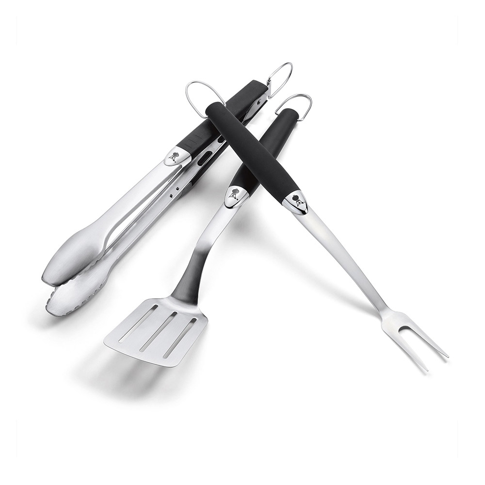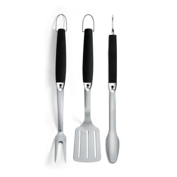 Набор инструментов для гриля от Weber из трех предметов содержит все необходимое для любителя барбекю. В него входят лопатка 45,8 см, щипцы 51,6 см и вилка 46 см — то, что нужно для приготовления большинства блюд. Длина инструментов достаточна для использования на угольных, газовых или электрических грилях любых размеров. Все инструменты изготовлены из высококачественной нержавеющей стали, а ручки покрыты мягким, нескользящим материалом. После использования все инструменты можно мыть в посудомоечной машине.