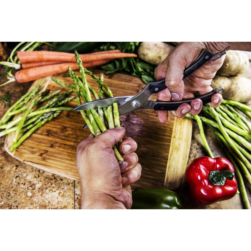 Профессиональные мясницкие ножницы Oklahoma Joe's усиленной конструкции с подпружиненными рукоятками. Режут все — от мяса до костей.