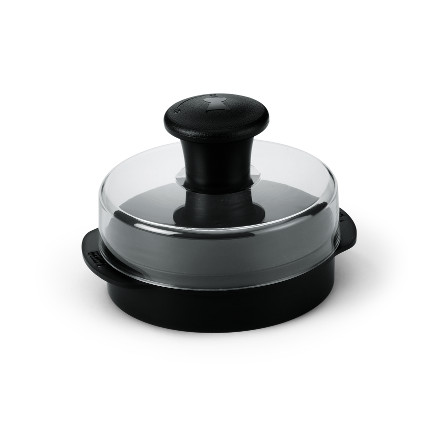 Крышка пресса создает в центре котлеты для бургера углубление, чтобы при жарке она оставалась равномерной толщины. Пресс имеет нейлоновую ручку, которая снимается для того, чтобы его было удобно мыть в посудомоечной машине.