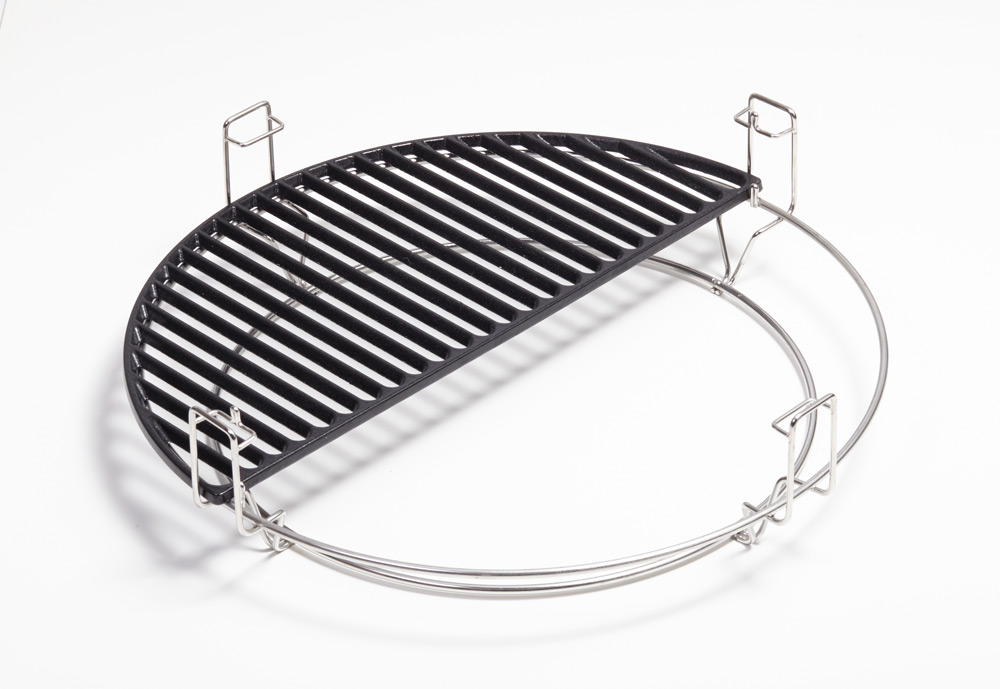 Благодаря превосходному удержанию тепла и долговечной прочности чугунная решётка идеально подходит для любых кусков мяса, а рисунок от решёток останется на приготовленном мясе, придавая ему непревзойдённую текстуру. Половинные решётки для гриля Kamado Joe Classic позволяют одновременно использовать различные методы приготовления блюд.