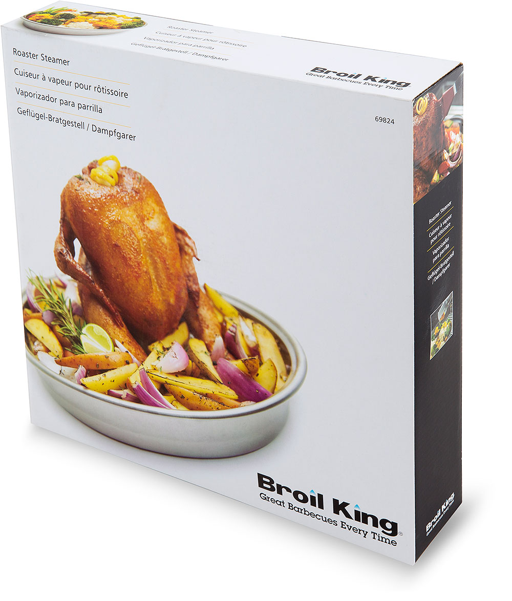 Ростер-пароварка из нержавеющей стали для приготовления курицы, овощей или морепродуктов. Аксессуар с отверстиями и съёмным цилиндром из нержавеющей стали позволяет готовить огромное количество блюд — овощи, морепродукты, а также запекать птицу целиком.