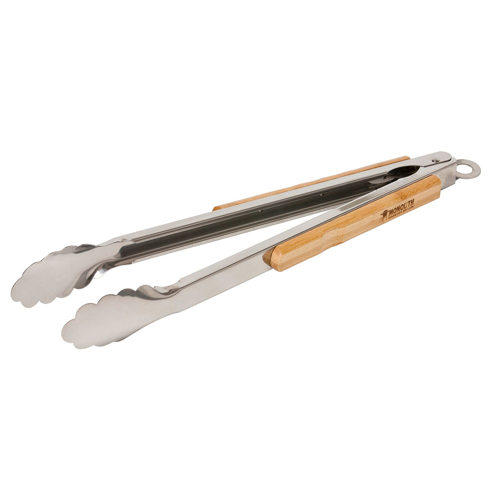Щипцы Monolith — это прочные щипцы для гриля, изготовленные из нержавеющей стали, которая сочетается с эргономичной бамбуковой ручкой. Запирающий механизм и петля для подвешивания позволяют удобно хранить аксессуар.