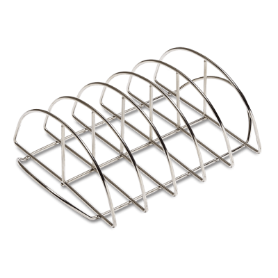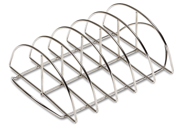 Решётка для рёбрышек оптимизирует рабочую поверхность, позволяя Вам равномерно приготовить несколько рёбрышек одновременно. На решётке также поместятся куриные ножки, отбивные и прочие вкусности. Подставка для приготовления рёбрышек вмещает 5 стоек рёбрышек на своем супер-прочном каркасе из высококачественной нержавеющей стали. Большие боковые ручки выдержат каркас всей подставки и позволят Вам легко и быстро переставить ее из одной части гриля в другую.