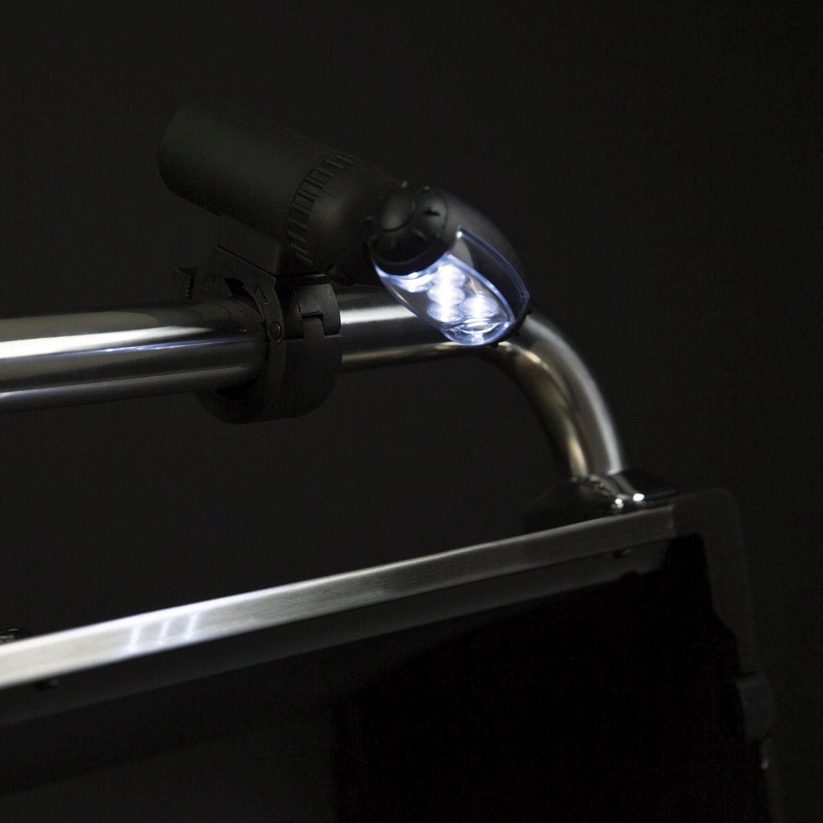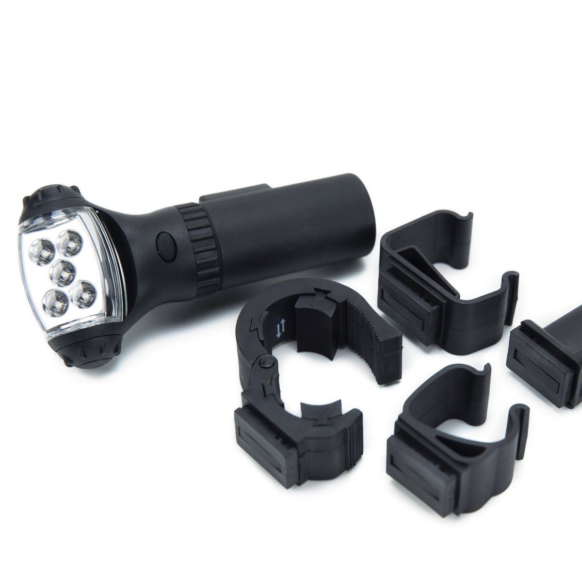 Фонарик Broil King LED Q-Lite имеет головку, вращающуюся на 360°, а так же вращающиеся линзы для освещения всего гриля. Корпус фонарика очень прочный и выдержит любые капризы погоды. В комплект входят 4 универсальных крепежа, 5 супер-ярких светодиодных лампочек и батарейки.