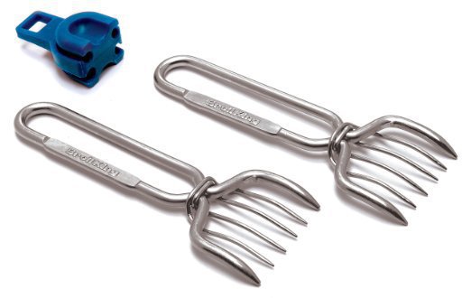 Эти долговечные и функциональные вилы для мяса предназначены для того, чтобы держать и перемещать жаркое и птицу. Также в набор входит силиконовый держатель для удобства хранения обеих вилок в одном месте. Силиконовый держатель выдерживает температуру до 260˚С и предназначен для мытья в посудомоечной машине. В комплекте 2 штуки.