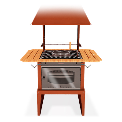 топка, крыша, дымоход, зонт, подъемный модуль, зольный ящик, модуль для дров, деревянная полка, двойная решетка-гриль