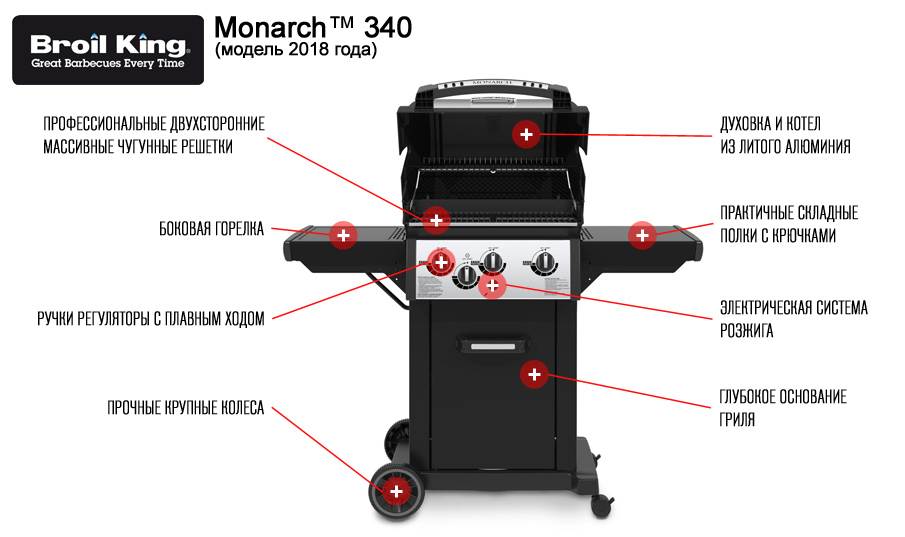 Газовый гриль Broil King Monarch 340 — это универсальный, не дорогой и популярный гриль компании Broil King.