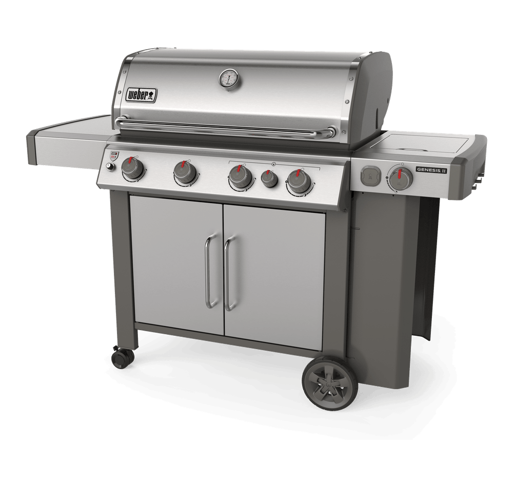 Гриль Weber Genesis II SP-435 GBS имеет раму увеличенной высоты (по сравнению с грилями Genesis II 2017 года), пластины Flavorizer из нержавеющей стали, зафиксированные увеличенные боковые столики, дополнительную конфорку в столике с ветрозащитой, дополнительную горелку для экстра-сильного жара, дугообразную ручку крышки, крышку из нержавеющей стали, дверцы основания гриля из нержавеющей стали — всё это Weber Genesis II SP-435 GBS.