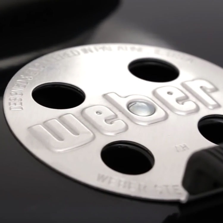 Система One-Touch позволяет очистить гриль от пепла буквально несколькими движениями рукой. Лепестки вентиляционной заслонки алюминиевые, рычаг из коррозионностойкой стали с алюминиевым покрытием.