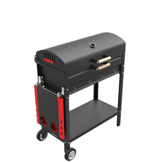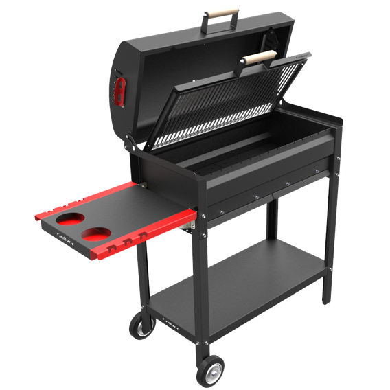 Привычный мангал «Редлайнер Комфорт Эйр» можно функционально расширить до полноценного угольного гриля – для этого мангал снабжается крышкой-гриль с решеткой из чугуна или нержавеющей стали. Таким образом, на одном устройстве можно готовить популярные и любимые всеми шашлыки на шампурах, а также жарить стейки или бифштексы. Также можно запекать большие куски мяса или птицу целиком, а при желании можно получать и копчёные деликатесы.