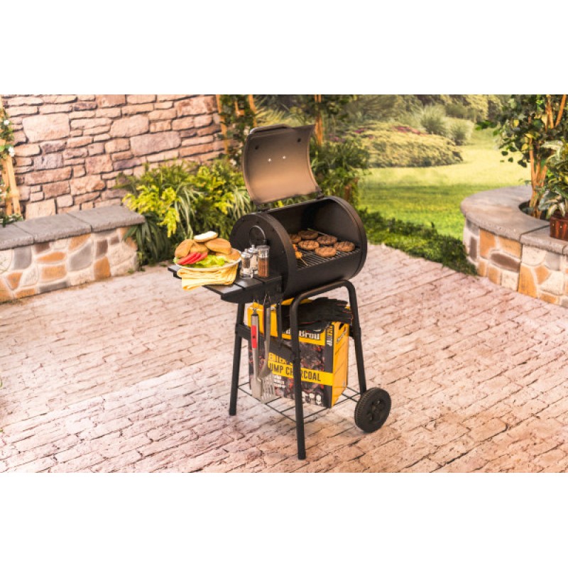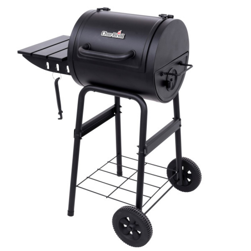 Char-Broil Gourmet — это самый младший гриль, в линейке угольных Char-Broil. Он выполнен в классической форме бочонка. Несмотря на компактный размер и невысокую цену, этот гриль может похвастаться литой чугунной решеткой. А сняв ее, можно легко жарить шашлыки на обычных шампурах.