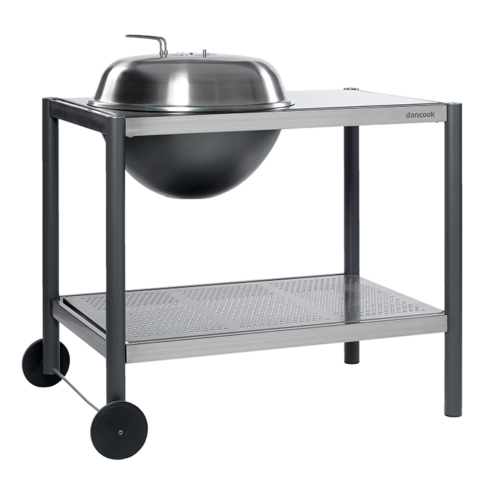 Угольный гриль Dancook 1500 благодаря большой столешнице позволяет с удобством разместить инструменты для готовки, маринад, соусницы и, даже, мойку с краном.