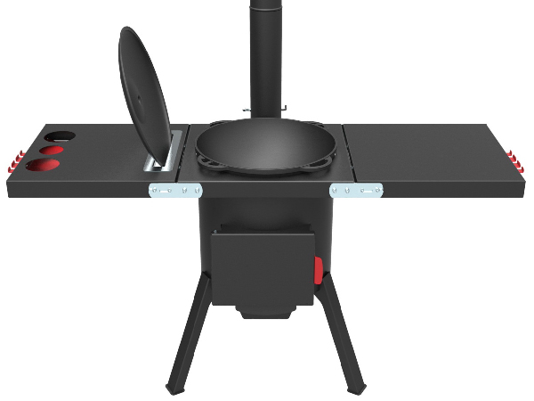 - Один из боковых столиков оснащён органайзером и нишей-держателем крышки казана;