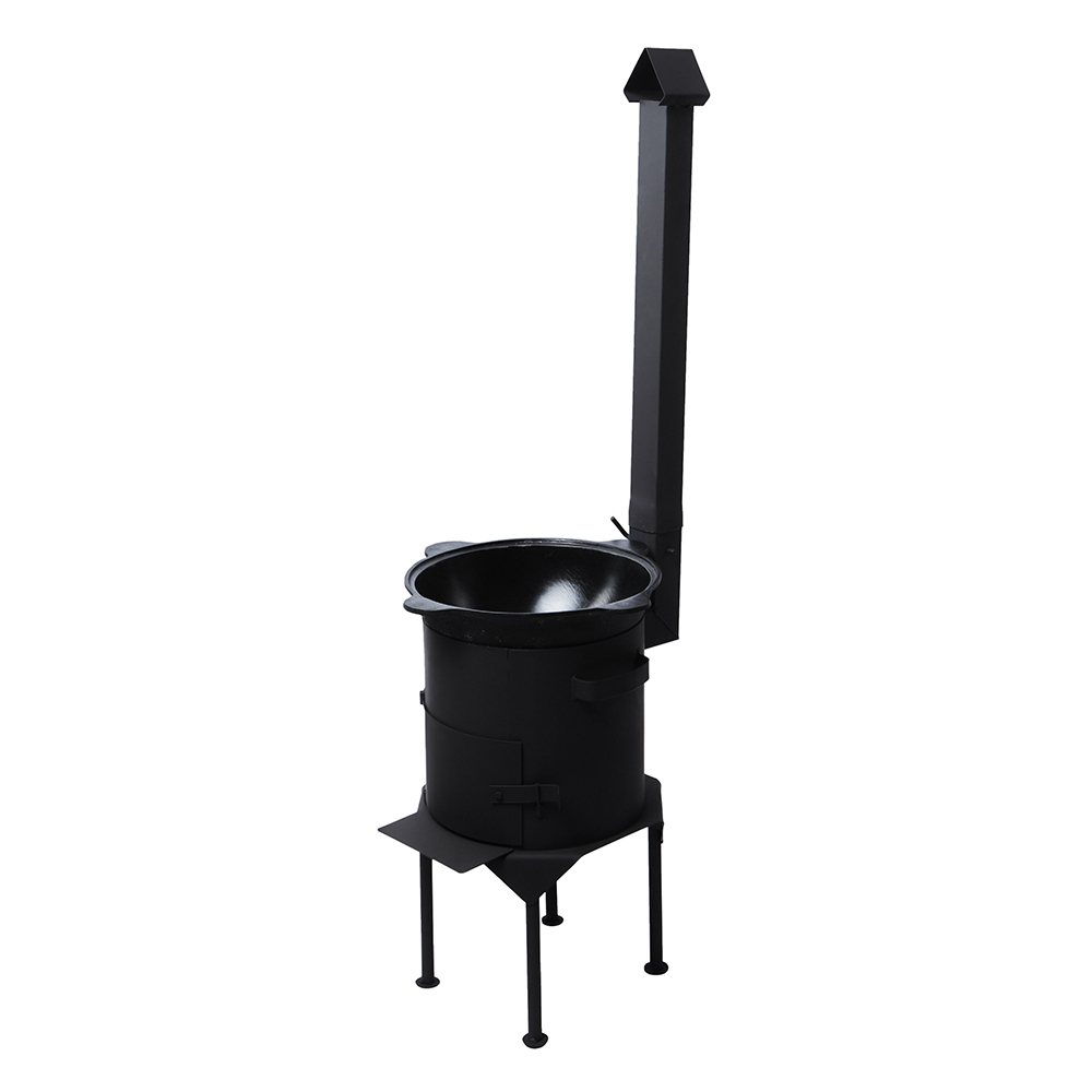 Печь под казан «Эконом-Плюс 400» с дымоходом и дверцей предназначена для использования казанов на 12 л. Изготавливается печь из стали толщиной 3 мм, покрытой специальной жаропрочной эмалью. Толстая сталь, доступная цена, съёмные ножки, съёмная труба и заслонка дымохода — преимущества, ради которых стоит купить печь для казана «Эконом-Плюс 400».