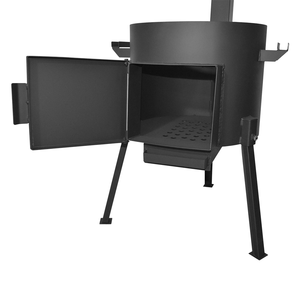 Печь под казан «Искра Премиум 400» предназначена для использования казанов на 12 л. Изготавливается печь из качественной стали толщиной 3 мм, покрытой специальной жаропрочной эмалью. Толстая качественная сталь, доступная цена, съёмные ножки, съёмная труба и заслонка дымохода — преимущества, ради которых стоит купить печь для казана «Искра Премиум 400».